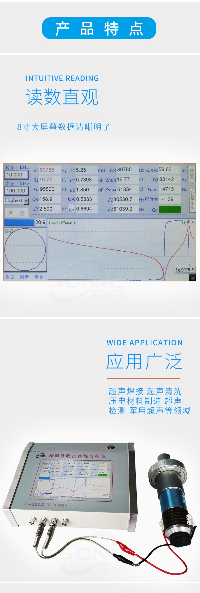 超声波有限元件阻抗测定仪产品特点: