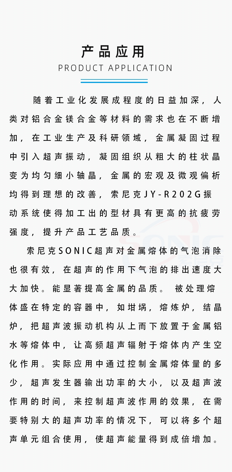 超声波在铝镁合金金属冶金领域中的主要应用,在超声辐射条件下,有利于金属溶液脱气,去杂质,细化晶粒,和强化浸出过程等的进行。